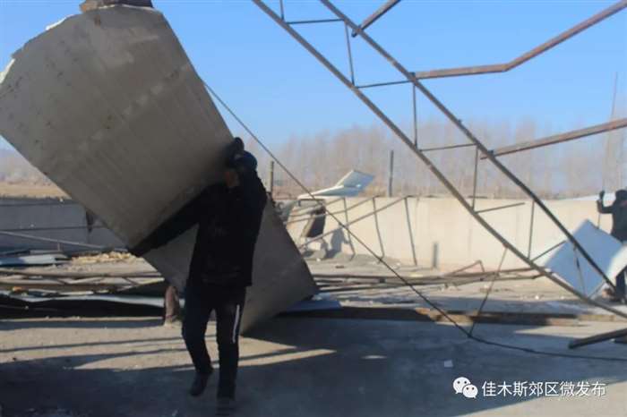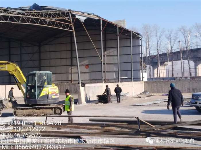 为防止彩钢瓦、铁皮瓦在大风天气吹到高铁道轨上,影响行车安全,按照上级统一部署,郊区对境内高铁沿线附近彩钢瓦、铁皮瓦安全隐患进行逐一清理。位于沿江乡新华村原中铁一局遗留第四拌和站搬后一直未清理,原厂房彩钢瓦在第一场大雪后被压塌,此处距离高铁线路不足50米,对高铁运行造成极大的安全隐患。对此问题,郊区委政法委、佳木斯工务段、沿江乡多次到现场研究解决方案。 1月4日,郊区政府党组成员杨志国携区政法委、区高铁办、沿江乡政府联合到原中铁一局遗留第四拌和站现场,研究拆除清理安全隐患工作。现场确定由沿江乡新华村对破损1-4号厂房全部清理拆除,围墙彩钢也需拆除,全部换成钢筋护网。 1月11日,沿江乡新华村组建了8人扒拆队伍,雇用大型挖掘机一台进行现场拆除清理工作。截止到1月18日,原中铁一局第四拌和站遗留1-4号共4栋厂房全部拆除,彩钢房铁皮瓦全部拆除移出现场,自此哈佳铁路郊区段最大一处安全隐患治理工作任务顺利完成。 在近3个月的高铁沿线安全专项整治工作行动中,郊区通过排查整治,清理大型彩钢瓦安全隐患2处,小型隐患8处,确保了哈佳铁路运输的安全畅通。