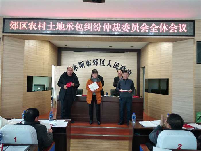 为规范化解郊区农村土地承包纠纷工作,1月17日下午,区农业局召开新一届郊区农村土地承包纠纷仲裁委员会全体会议。郊区政府副区长王俊波、区直相关部门负责人、有关人民团体代表、农村集体经济组织代表、农民代表和区法律、经济等相关专业人员共40余人参加会议。 会议选举产生王俊波为郊区农村土地承包纠纷仲裁委员会主任,农业局赵义、刘燕担任副主任;审议通过仲裁员建议名册、仲裁委员会章程、仲裁规则、内部管理制度、仲裁员考核制度、仲裁预算等草案;区农业局局长宣读仲裁委员会组成人员名单及仲裁员名册,并举行仲裁员聘书颁发仪式。 王俊波强调,仲裁委员会是经过政府批准依法设立的,为解决区农村土地承包纠纷的重要机构,具有独立办案、专业性强、依法裁决的特点。郊区自2006年依法成立农村土地承包纠纷仲裁委员会以来,仲裁委员会为解决全区农村土地方面的信访案件做了大量工作。此次换届是郊区农村土地承包纠纷调处仲裁工作的一件大事。各位委员要依法履行好各自工作职责,依法依规化解区农村土地承包纠纷,工作过程中要坚持公开、公平、公正的原则,维护当事人的合法权益,为维护郊区农村社会稳定做出应有的贡献。 会后,仲裁办向所有委员发放了有关农村土地承包纠纷仲裁方面的学习资料。