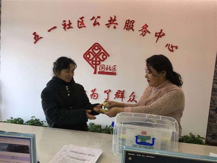 近日,五一社区为困难家庭低保户冯宝深免费发放生活药品。