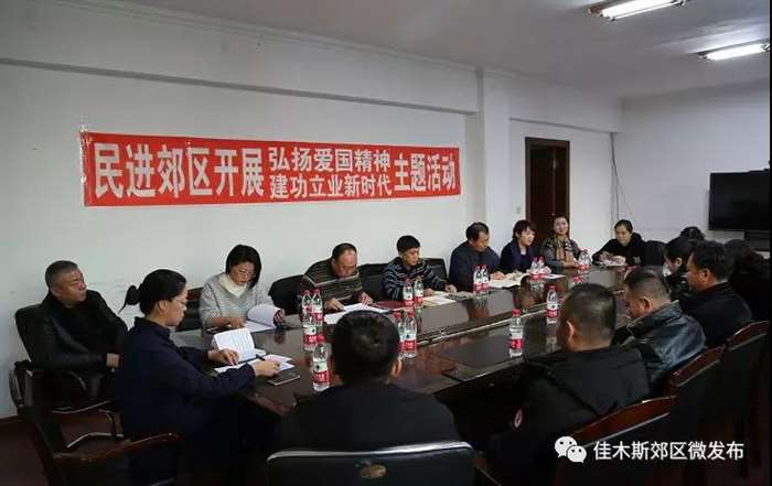 为贯彻落实省委统战部及民进省委关于转发中央统战部在党外知识分子中深入开展“弘扬爱国奋斗精神、建功立业新时”活动通知精神,12月14日下午,民进郊区委在郊区政府二楼会议室举行“弘扬爱国奋斗精神、建功立业新时代”主题座谈会,民进佳木斯主委杨松,郊区政协主席王洪军,民进市委副主委龚海峰,郊区政协副主席、民进郊区主委杨玉霞,民进郊区各位会员参加会议。 龚海峰传达了关于《民进黑龙江省委统战部印发关于在广大知识分子中开展“弘扬爱国奋斗精神、建功立业新时代”》活动实施方案的通知;传达了郊区统战部关于在广大知识分子中开展“弘扬爱国奋斗精神、建功立业新时代”具体的活动实施方案。 杨松对在广大知识分子中开展”弘扬爱国奋斗精神、建功立业新时代”主题活动进行了讲解和主题座谈。他指出,弘扬爱国奋斗精神,要从身边榜样学起,要从先进、优秀的民进会员学起;要通过民进省委副主委、中科院院士、哈工大教授邓忠全为中国载人航天事业做出突出贡献和哈尔滨第十一中学教师肖奇徒手勇接坠楼儿童的英雄事迹向民进各位会员传达爱国、爱家、爱身边的每个人,把建功立业放在岗位上,放在身边力所能及的事上。同时,他鼓励民进会员积极发现身边有奉献精神的优秀民进会员,弘扬爱国奋斗精神。 民进郊区广大知识分子和优秀企业家表示,会在平凡的岗位上做到爱岗敬业,甘于奉献、诚实守信、热心公益事业、各位会员要把爱国奋斗精神融入到新时代、新征程,融入到踏实的本职工作中,并大力宣传弘扬社会主义核心价值观、争取创造新的业绩。