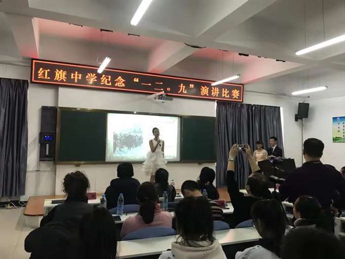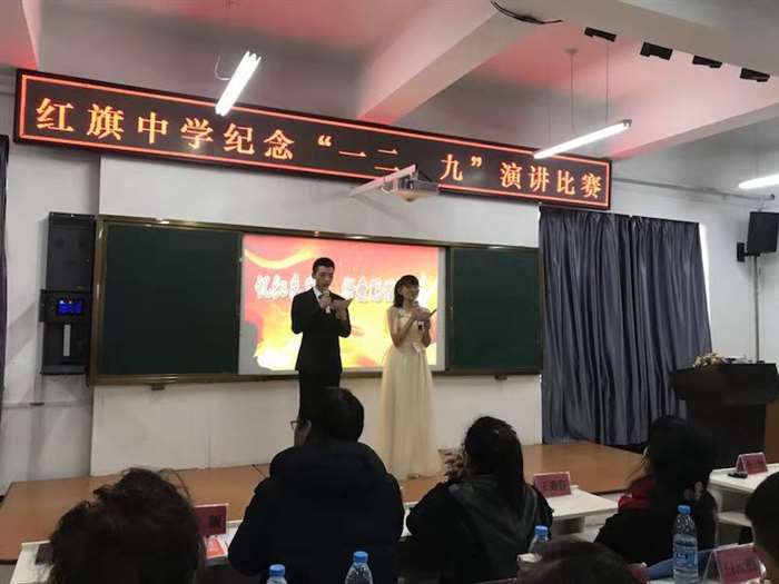 为展现当代青少年积极向上的精神风貌,弘扬“一二.九运动”中学生们的爱国精神,加强了学校文化教育及精神文明的建设,近日,红旗中学举办纪念“一二•九”演讲比赛。