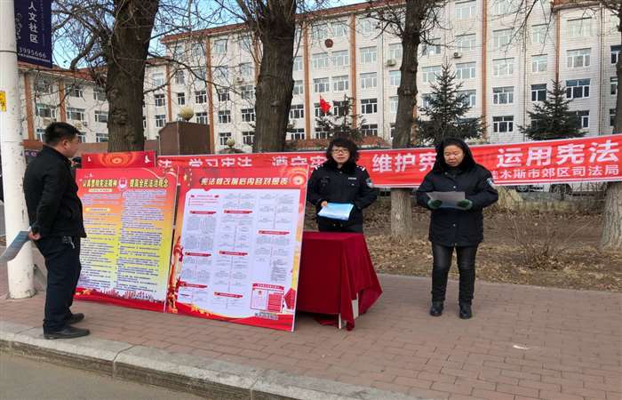 为宣传和展示普法成果,进一步推进郊区法治建设,按照市司法局关于开展“12.4”宪法宣传日的工作部署,近日,郊区司法局开展了以“尊崇宪法、学习宪法、遵守宪法、维护宪法、运用宪法”为主题的法治宣传活动。