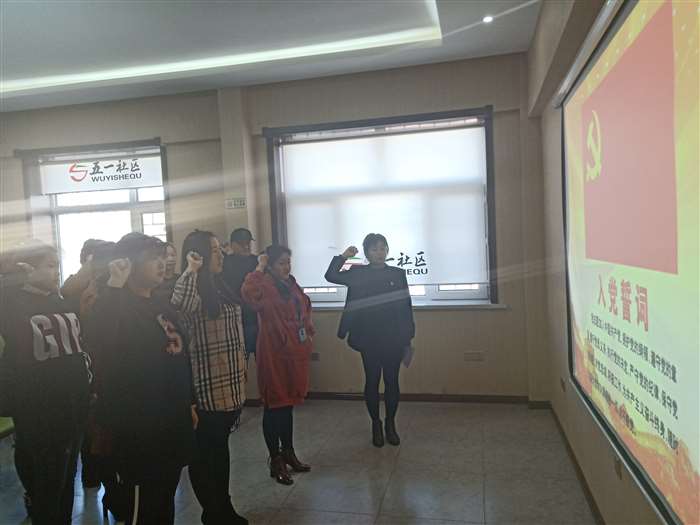 活动中,五一社区全体党员举起右手,握紧拳头,在鲜红的党旗下,重温入党誓词,再次庄严宣誓。此次活动激发了党员们的党性热情,坚定了爱党、信党、跟党走的坚定决心和为共产主义事业奋斗终身的理想信念。