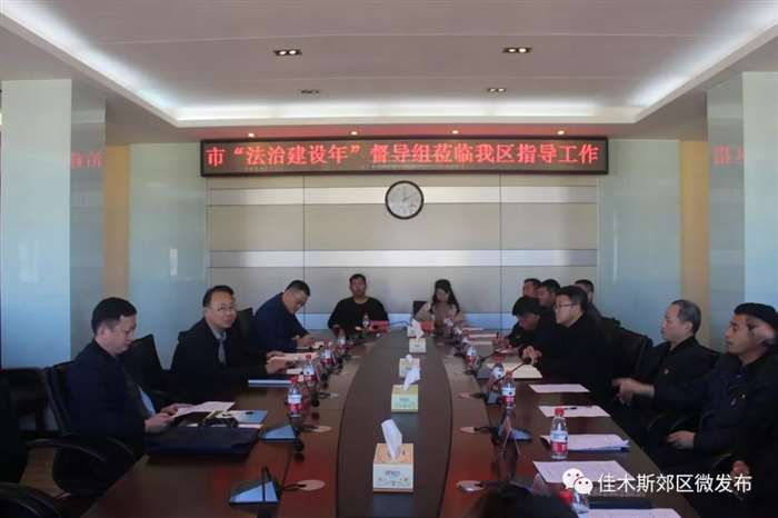 10月12日,市委政法委副书记姜富率市法治建设年督导组到郊区检查指导工作。 督导组一行听取了郊区委常委、政法委书记曲松涛关于郊区法治建设年工作推进情况的汇报,并召开座谈会,法治建设年工作各专项组成员单位相关领导参加座谈。 督导组先后深入新城社区和沿江乡民兴村开展了实地监督指导,并在新城社区参观了郊区禁毒教育园地和新城社区禁毒工作站,询问了禁毒工作开展情况。检查中,督导组对我区的禁毒园地和禁毒工作站运行情况给予了高度赞扬。深入沿江乡民兴村督查时观看了一村一警务助理工作室,询问人员及设施配备情况,与警务助理沟通详细询问工作情况以及存在的一些问题。 督导组认为,郊区的法治建设年工作走在了全市前列,强化了组织领导、责任落实、工作推进“三到位”;做到了宣传好、学习好、活动好。姜富对郊区提出三点意见:一是要进一步提升政治站位,克服应付思想,要主动作为。郊区人大、区政府办、区司法局和公、检、法各部门要主动承担法治建设任务。二是要坚持工作标准,扎实做好迎接省检的准备。三是要压实落靠责任,扎实推进法治建设年工作各项措施,努力营造“学法,知法,懂法,守法,用法”的法治郊区良好氛围。