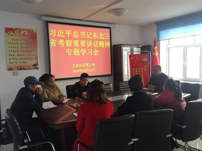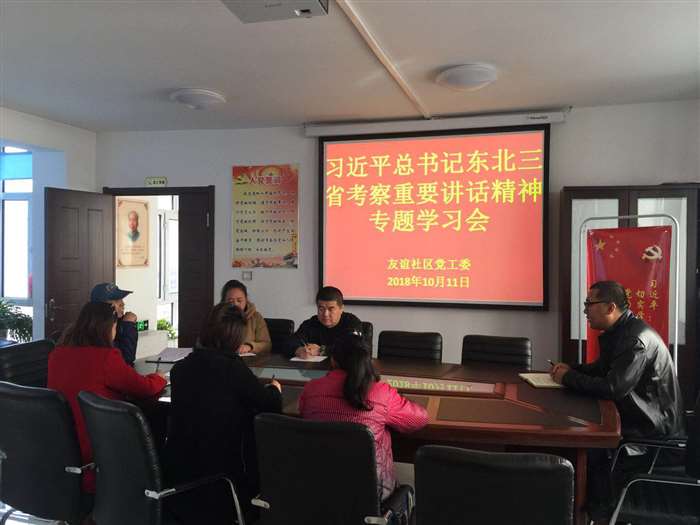 10月11日下午,友谊社区召开会议学习习近平总书记在东北三省考察重要讲话精神。