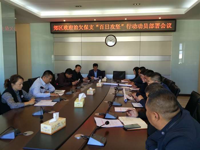 9月30日下午,按照市解欠联席会议《关于开展治欠保支“百日攻坚行动”的通知》(佳解欠联办发〔2018〕12号)要求,郊区召开治欠保支“百日攻坚行动”动员部署会议,区政府党组成员、解欠联席会议召集人钱瑜文出席并讲话。 会议传达了《郊区开展治欠保支“百日攻坚行动”实施方案》和区政府《关于调整我区解决拖欠农民工工资问题联席会议组成人员的通知》。 会议指出,一要讲政治、顾大局,充分认识做好治欠保支工作的重要性和紧迫性。二要坚持问题导向,围绕突出问题集中开展整治拖欠农民工工资工作。三要牢固树立“四个意识”, 坚定信心,齐心协力,克难攻坚,全面治理欠薪问题,确保保障农民工工资支付工作取得实效。四要加强领导,勇于担当,主动作为,切实履行好部门职责,坚决打赢治欠保支百日行动攻坚战。 会议强调,各相关单位和行业主管部门要进一步健全治欠保支工作领导班子,切实加强领导,由党政一把手负总责、亲自抓,分管领导具体抓、深入抓,明确专人专职负责治欠保支工作,层层传导压力,级级夯实责任,形成一级抓一级的工作格局。确保各项措施落实到位,维护好农民工合法权益。 全区各乡镇政府、区直有关部门、驻区相关单位等二十六个成员单位参加会议。
