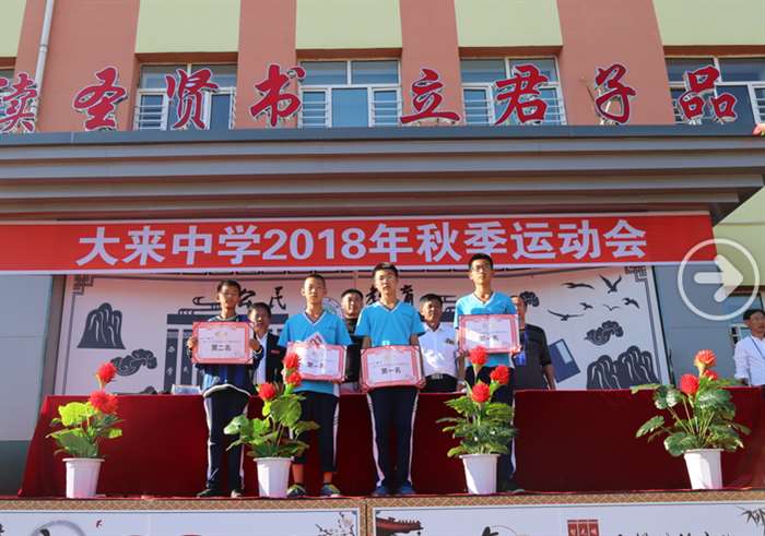 追逐九月的和风,沐浴金秋的阳光,9月20日,大来中学召开2018年秋季运动会。区教体局、大来镇相关领导参加大会。 检阅仪式上彩旗飘舞、鼓乐齐鸣。教师队伍步伐稳健、意气风发;家长方队精神抖擞、斗志昂扬;学生方阵步伐整齐、振臂有力,他们灿烂的笑脸充满活力,铿锵的口号宣扬着必胜的信念! 大型团体操“拥抱青春,拥抱梦想”融合了体操、武术、歌舞等多种元素,既彰显了大来中学公民教育的育人理念,又契合了时代的节拍,紧扣“中国梦 我的梦”的主题。 赛场上,健儿们激情迸发、斗志昂扬。他们本着友谊第一、比赛第二的原则,凭着奋勇拼搏永不服输的精神在赛场上留下驰骋的英姿与拼搏的身影。 精彩的开幕式、团体操、歌舞等带给了大家一场异彩纷呈的视觉盛宴,运动场上健儿们永不言败的精神展现了拼搏进取的精神风貌,运动会也为家校交流提供了平台,有力地促进了家校的合作共育。