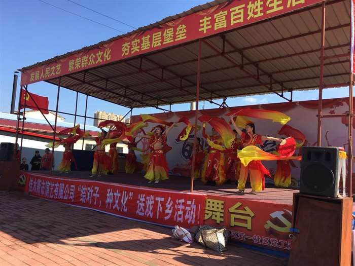为进一步丰富辖区居民精神文化生活,弘扬中国传统文化,在中秋佳节即将来临之际,9月13日上午,五一社区党工委与佳木斯市演艺有限公组织开展“结对子,种文化”送戏下乡活动,邀请公司在五一社区文化大舞台为居民表演精彩节目。