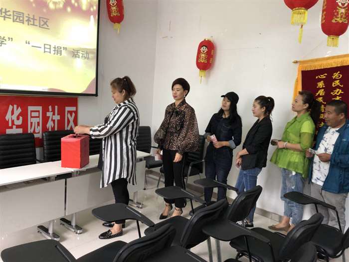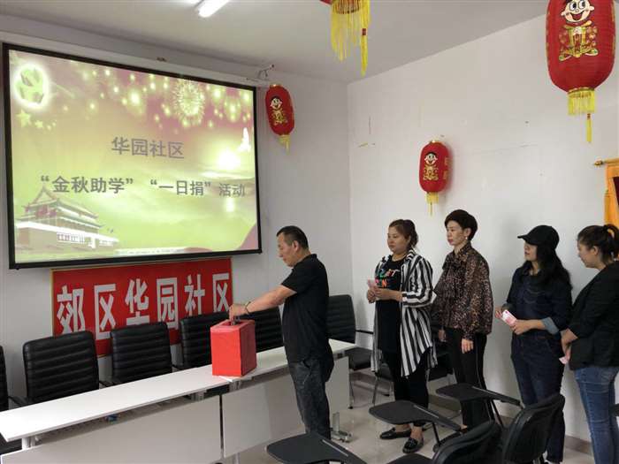 多年来,华园社区一直坚持对辖区内大、中、小学学生进行捐款,同时也带动社区内党员、驻区人大代表和特色党支部为贫困学生捐款。又是一年新生入学季,为帮助更多家庭贫困的学生圆好上学梦、大学梦。8月24日,华园社区开展“金秋助学一日捐”活动。