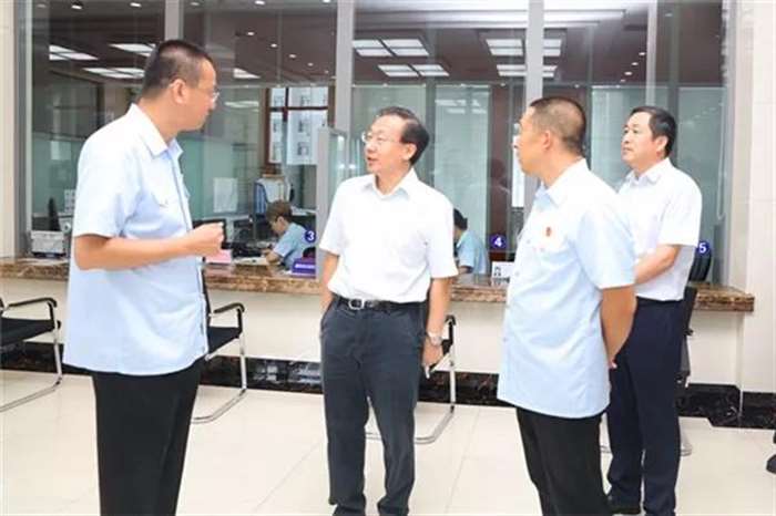 8月6日上午,佳木斯市委书记徐建国率领市委办、市委政研室、市委政法委、市公安局等领导一行深入佳木斯市郊区人民法院进行调研,市中院党组书记、院长韩辉、郊区区委书记高志军、区委常委、政法委书记曲松涛、郊区法院党组书记、院长王斌参加调研。 徐建国一行实地考察了郊区人民法院诉讼服务中心、审判法庭、执行指挥中心等场所,详细询问了相关工作情况。并来到郊区法院佳西人民法庭看望慰问了法庭干警,随后与市中级法院班子成员及城区四个基层法院院长进行座谈。 诉讼服务中心 在诉讼服务中心,王斌向徐建国汇报了郊区法院诉讼服务中心的软硬件的建设情况,通过在诉讼服务中心设立立案、缴费、法律文书送达、诉前调解、法律咨询、判后答疑等多个窗口, 为群众提供“一站式、全方位、低成本”的诉讼服务。设置信访接待室,实行院长每日接访制度,班子成员每个工作日在诉讼服务中心信访室轮流挂牌接访,及时有效地处理群众所反映的问题。徐建国对该院延伸窗口服务功能,深化便民利民措施,改善老百姓的诉讼环境,不断满足群众司法需求表示肯定。