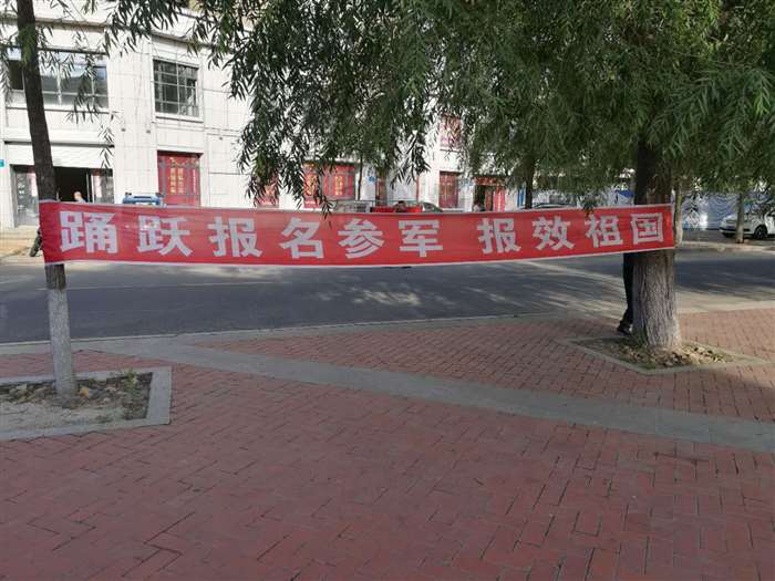 社区工作人员通过在辖区内悬挂宣传条幅、发放宣传单、微信网格群等形式营造应征氛围,提高征兵的知晓率。