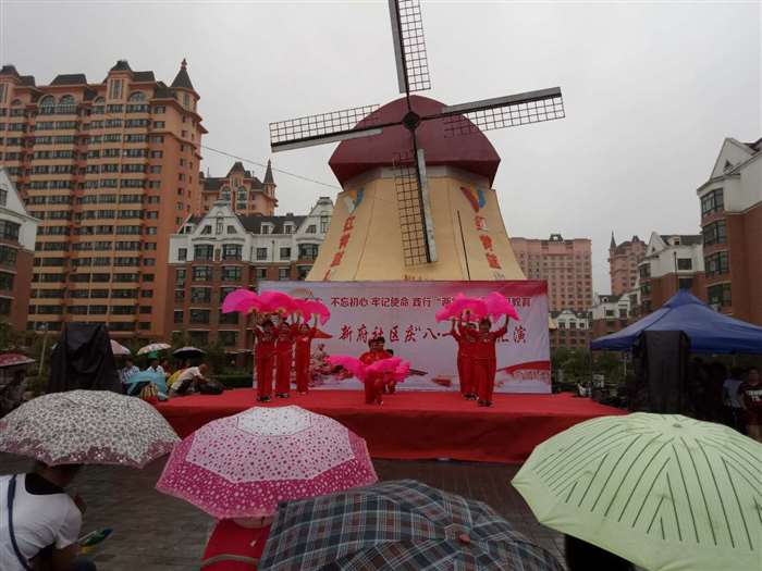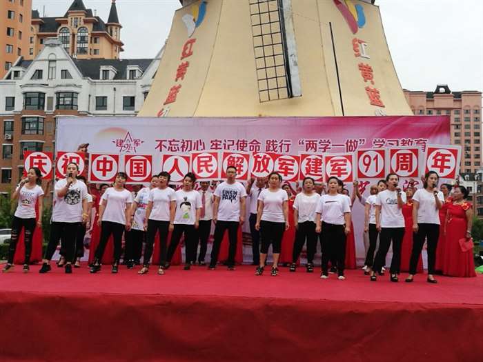 为进一步践行“两学一做”学习教育精神,深入贯彻落实党的十九大报告主题“不忘初心、牢记使命”,7月30日,新府社区在荷兰城小区广场举办庆“八一”文艺汇演。