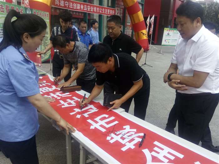 为贯彻落实《国务院等19部门关于展开2018年全国食品安全宣传周活动的通知》及省、市食安办对开展相关工作的要求,7月26日上午,郊区食品安全委员会办公室组织各乡镇、卫计局、教体局、农业局、公安分局、市场监督管理局、住房建设和城市管理综合执法局、畜牧局、社区指导办等食品安全成员单位共170人,在大润发万新店开展主题为“尚德守法 创建食品安全城市 让生活更美好”的食品安全宣传活动启动仪式。活动由食安办主任、郊区市场监督管理局局长潘俊国主持,食安办副主任、郊区市场监督管理局副局长曲启波宣读活动方案,企业代表表态发言,区委常委、政府副区长孙跃武现场宣布郊区食品安全宣传周启动开始并作讲话。 孙跃武强调:一是要切实把食品安全当作头等大事来抓。食品安全是重大的民生问题、重大的政治问题,是彰显政府执政能力的一块试金石。去年以来,郊区以“创城”工作为契机做了大量的工作,但郊区食品行业多、小、散的格局还未改变,小餐饮店、小食品店、小摊贩、小作坊等“四小”食品长期处于监管“真空”地带,食品安全隐患比较突出;消费者自我保护能力差,极易发生安全事件;食品行业诚信体系建设不完善,守信褒奖、失信重处的管理机制实施不到位,部分企业心存侥幸、以身试法。因此要以坚决的态度、过硬的措施、更大的力度做好食品安全工作,切实保障全区群众 “舌尖上的安全”;二是动员全社会力量共同治理食品安全。企业诚信、行业自律是食品安全的基础,食品企业法人、经营者是食品安全的第一责任人。希望参加今天启动仪式的各企业代表要带头强化行业自律,提升食品安全管理能力,树立安全发展、诚信经营的理念,落实国家相关制度、行业标准和规范,诚信自律生产经营。区食品安全委员会各成员单位要严格按照法定职责,紧密围绕活动主题,高度重视,精心组织好本次宣传周活动,深入开展进社区,进学校,进农村,进企业,进商场的“五进”活动,确保宣传活动取得预期效果;三是落实最严格的食品安全监管措施。各行业主管部门要严格按照省委、省政府,市委、市政府和区委、区政府的统一要求部署,以对人民高度负责的态度,深入开展食品安全专项整治, 严格食品生产企业、食品批发、商场超市和中型以上餐饮单位、学校食堂许可准入管理,采取飞行检查、突击检查、交叉执法等多种形式,提高发现问题的能力。对不按标准组织生产经营的商家,一律吊销许可证。将现场制售食品全部纳入监管范围,核定经营范围发放许可证。对市场开办方、柜台出租者、展销会举办者,擅自允许未取得许可证的食品经营者入场销售食品,或未履行检查、报告等义务的,依法从重处罚,造成严重后果的,责令停业停展。希望各有关部门、各生产经营企业积极行动起来,共同汇聚保障食品安全的正能量,合力构建治理食品安全的新格局,为维护人民群众身体健康,促进社会和谐稳定,加快建设富裕文明和谐幸福郊区做出更大的贡献! 此次活动现场放置宣传板2块、宣传条幅4条、发放食品安全宣传单800余份,接受群众咨询52次,运用快检设备现场为消费者检测蔬菜3次。到会的食品安全委员会成员单位代表在“尚德守法 创建食品安全城市 让生活更美好”的条幅上签字,将活动推向高潮,活动在群情振奋中圆满结束。