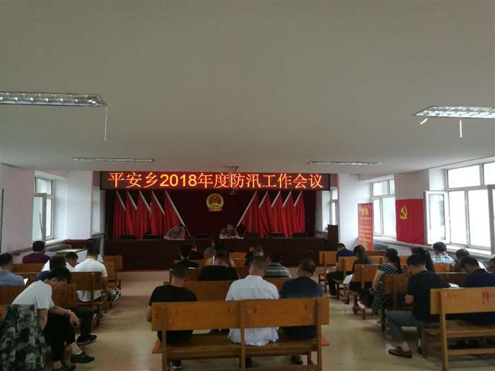 7月25日,平安乡召开2018年度防汛工作会议,辖区内13个行政村党支部书记、村民委主任及全体包村乡干部参加会议。