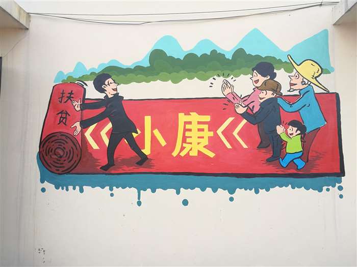 活动当天,学生们顶着烈日,以村民们喜闻乐见的漫画方式进行墙面彩绘,内容结合福胜村精准扶贫、移风易俗。在学生们的认真绘制下,色彩丰富的彩绘遍及整个村委会墙面,一幅幅墙绘作品呈现在大家面前,成为村庄里一条亮丽的风景线。