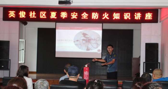 为全面提高社区抵御火灾的整体能力,增强社区居民消防安全意识与应急自救能力,预防和减少各类火灾事故的发生,7月10日上午,英俊社区邀请七进社区消防培训中心为辖区居民、辖区商户举办了一堂易懂、易记、实用性强的消防安全知识讲座。