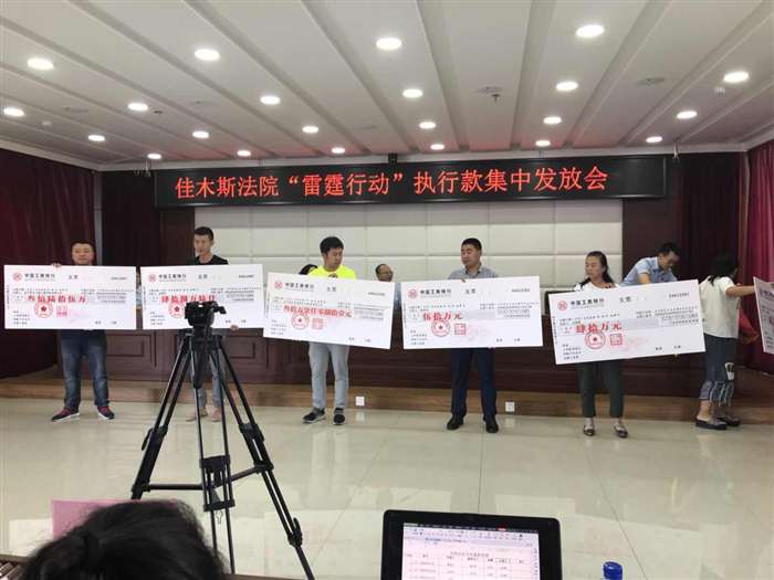 按照市中级人民法院部署,近日,郊区人民法院联合向阳区人民法院、前进区人民法院、东风人民法院共同召开“佳木斯法院‘雷霆行动’执行款集中发放会”,申请执行人逾百人,郊区人民法院集中放款案件56件,以现金形式发放共计432余万元,以一案一账户形式发放40余万元。省、市级多个媒体对本次案款发放活动进行了直播、报道。 “雷霆攻坚”专项执行活动的力度有增无减,一批久执未结的案件,经群众提供的财产线索纷纷顺利执结。高压的执行态势、强硬的攻坚措施,案款到位率直线上升。为及时给申请人发放案款,执行法官利用假期时间,加班加点核对统计、登记造表,形成台账,并制定了放款预案。 在落实“雷霆行动”任务的攻坚战中,郊区人民法院全院参与,任务明确,目前为止,拘留被执行人10人,对拒执“老赖”形成了强大的威慑作用,取得了阶段性胜利。在下步工作中,郊区人民法院将以“雷霆行动”为契机,多举措加大执行工作力度,全方位压缩“老赖”生存空间,将彰显司法权威和司法人文情怀有机统一,在持续保持对“老赖”的高压态势同时加大涉民生案件的执行力度,最大程度上确保申请执行人的合法权益。