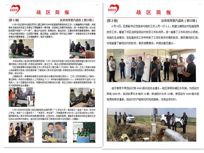 为深入开展扶贫攻坚第八战区精准扶贫政策宣传工作,着力为全镇脱贫攻坚工作提供良好的舆论环境和精神动力,扶贫攻坚第八战区(望江镇)成立战区宣传小组,在望江镇各帮扶单位专员提供扶贫工作信息后,宣传干部在“第八战区望江镇扶贫工作微信群”内每日发布一期《战区简报》,现已发布三期,简报内容分为“宣传、举措、政策、温暖、工程、档案、活动”等,引导大家抓好宣传工作,及时总结和推广好的经验与做法,此举有效提高了精准扶贫工作效率和水平。