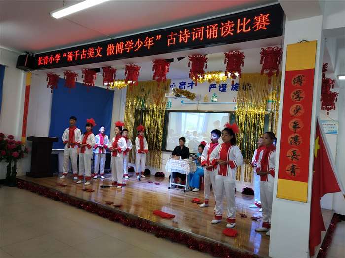 近日,长青小学举行了主题为“诵千古美文 做博学少年”的古诗词诵读比赛。