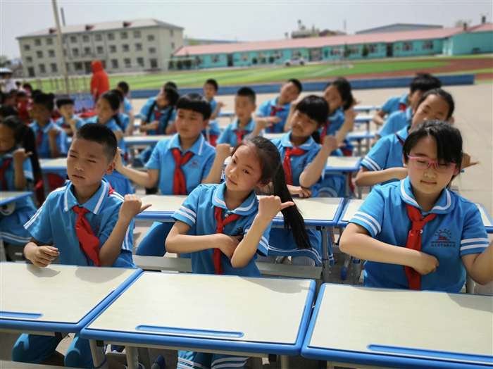 比赛中,同学们坐姿端正、节奏准确、动作整齐、健康活泼。手指操以出、勾、弹、打、绕手指为基本内容,根据不同方法变化交错,伴有儿童化、游戏化的动作,不仅能锻炼学生手、眼、脑的协调配合能力,也能锻炼大脑的思维,促进学生身心健康发展。
