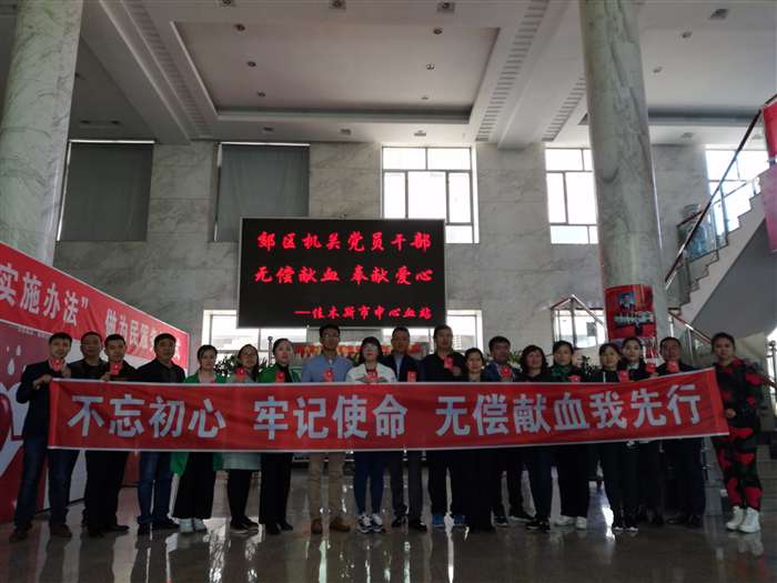 为进一步弘扬党的优良传统,促进机关精神文明建设,展现郊区党员干部“博爱、无私、奉献、互助 ”的精神风貌,在第71个世界红十字日到来之际,5月8日上午,郊区机关工委联合郊区人力资源和社会保障局组织机关党员干部在佳木斯市红十字中心血站开展“不忘初心、牢记使命,无偿献血我先行”主题党日活动。 在血站大厅内,党员干部们在血站工作人员的引导下,按规定认真填写申请表、参加体检和抽血化验,将自己健康的血液无私奉献给需要帮助的人,用自己的实际行动践行了郊区党员干部为民服务、无私奉献的博大情怀。本次活动共有32名党员干部参加,献血总量达四千余毫升。 党员干部们纷纷表示:只要身体允许,今后将继续积极参加无偿献血活动,挽救生命、回报社会,努力尽到机关干部应尽的社会责任。 此次活动充分发挥了党员干部的先锋模范作用,增强了大家的奉献意识和责任意识,诠释了共产党员全心全意为人民服务的宗旨。