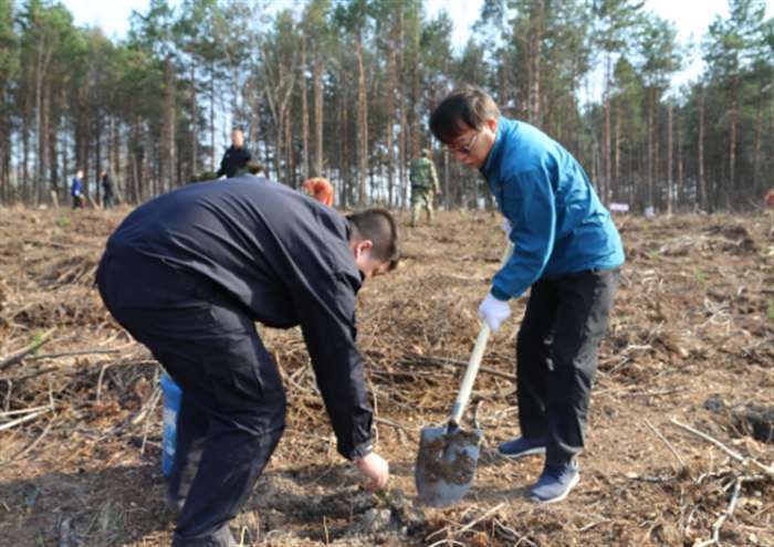 活动现场,区委、区人大、区政府、区政协四个班子领导挥锹培土,和大家一道将一株株红松树苗植入土坑,相互探讨栽植的技术要领,植树现场一片热火朝天的劳动景象,有的扶苗,有的回填新土,有的浇水护树,各个环节都有条不紊。领导和林场职工齐心协力,一个小时的时间,5000余株新栽下的红松树苗昂然挺立,用绿色组成了一道靓丽的风景。