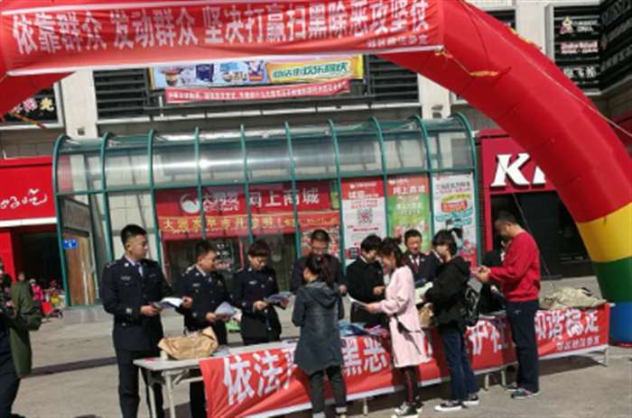 郊区扫黑办紧紧围绕扫黑除恶专项斗争活动主题和法制宣传等内容在新大润发设立宣传站,各乡镇、社区设立分宣传点,工作人员采取张贴通告、悬挂横幅、宣传版面展示和发放宣传单、宣传图册等多种形式进行宣传,向群众宣传黑恶势力的危害性和公安部门对黑恶势力的打击决心。市政法委副书记徐佳才带领市中级人民法院、市检察院、市公安局、市司法局主要领导到西格木镇平安村对宣传活动进行指导,郊区委常委、政法委书记曲松涛,政法委副书记、区扫黑办主任孙琳英,西格木镇党委书记王延峰参加活动。