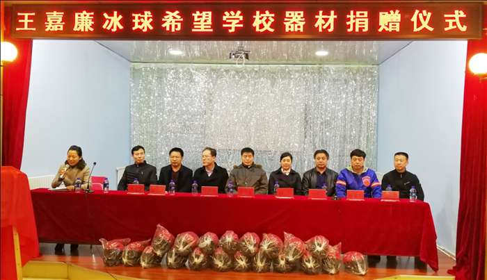 4月11日下午,第十五小学举行了“王嘉廉冰球希望学校”器材捐赠仪式。美国纽约长岛人俱乐部中国哈尔滨代表处首席代表王金玉、佳木斯教育局副局长于庆澎、佳木斯体育局副局长刘学东、郊区政府副区长白洁及郊区教育体育局相关负责人参加仪式。