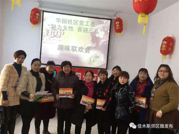 3月8日上午,华园社区党工委在社区文化活动室举办了“魅力女性喜迎三八节”趣味联欢会,社区女党员、社区妇女代表40余人参加。