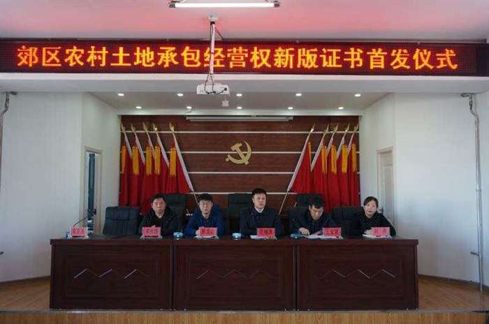 12月29日,在郊区长发镇四楼会议室举行了郊区农村土地承包经营权新版证书首发仪式。市经管总站站长焦龙吉、郊区委副书记范继涛、郊区政府副区长王俊波、各乡(镇)和区农业局相关人员出席了仪式。 仪式由郊区政府副区长王俊波主持。长发镇东胜村的20户村民代表领取了新版农村土地承包经营权证,长发镇党委书记张颜东作典型发言;郊区经管站站长刘燕对下步确权工作进行具体安排;市经管总站站长焦龙吉对郊区土地确权工作予以了肯定,并对确权工作的重要意义和下步工作的紧迫性做了进一步指示;郊区委副书记范继涛作了重要讲话。 范继涛指出:郊区的土地确权工作开展以来,郊区、乡、村各级工作人员和测绘公司经过辛苦努力,按照确权工作流程的要求基本完成了前期各项工作,目前已进入到了工作最后阶段。颁发的郊区第一批土地经营权证标志着郊区拥有承包经营权的农户土地经营权属有了保障,具有划时代的意义。 范继涛要求:各乡镇及确权工作领导小组成员单位要进一步提高对土地确权工作的认识,突出重点、加快推进。要分类指导,加快颁证工作进度,妥善处理历史遗留问题,保证农村稳定。按照全省农村土地承包经营权确权登记颁证工作攻坚年的要求,全面完成郊区确权颁证任务。 仪式后,与会人员参观学习了长发镇东胜村土地确权档案。