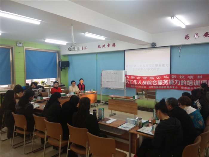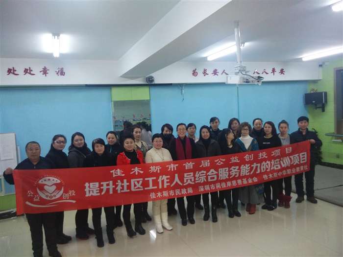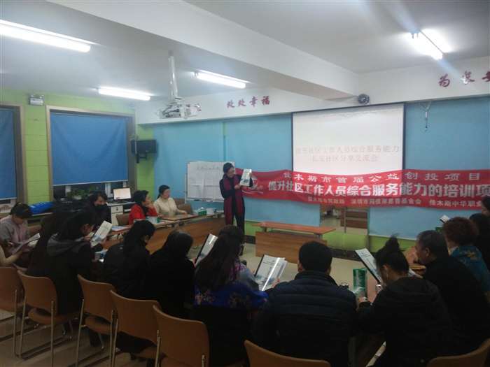 今年7月,经过长安社区和佳木斯中华职教社多次沟通交流开发的“提升社区工作人员综合服务能力”公益创投项目在我市首届公益项目创投大赛中中标,7月28日正式进入长安社区,12月15日下午,在项目总结分享交流会上的一片热烈掌声中,该项目圆满收官。 历时近6个月的培训过程中,佳木斯中华职教社汇集我市职业教育、公文撰写、心理学等方面的专家学者,为长安社区全体工作人员进行了10场职业提升课程培训,从人生和职业规划、心理疏导、沟通能力、公文撰写、应对突发事件共5个方面对社区工作人员进行了专业培训和实践操作指导,令大家受益匪浅。 佳木斯中华职教社秘书长皮秀云对全体工作人员给与充分肯定,代表佳木斯中华职教社授予了长安社区“2017年黄炎培职业教育杰出贡献奖”,并将该项目运行的全部过程和教案整理成《学习资料汇编》,赠与每名社区工作人员。在社区指导办和长安社区的全力邀请下,佳木斯市中华职教社将携全体专家教授团队于2018年1月3日至10日分两批对郊区17个社区的300余名工作人员进行“提升综合服务能力”集中培训。