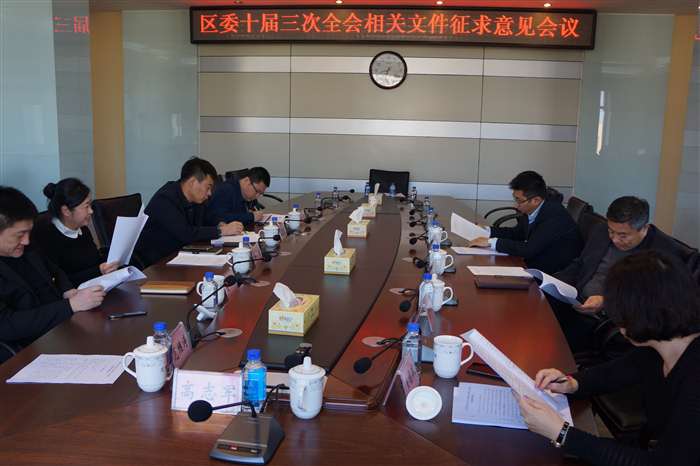 12月17日,高志军利用一整天的时间,分别主持召开了郊区党政班子成员、郊区直部门负责人、企业家代表、离退休老干部、民主党派代表、乡镇党委书记、社区指导办主任和社区党工委书记等不同层面人员参加的3个区委十届三次全会相关文件征求意见会议,就《区委十届三次全体(扩大)会议工作报告(征求意见稿)》和《关于深入学习宣传贯彻党的十九大精神全力践行习近平新时代中国特色社会主义思想奋力谱写现代化强区壮丽新篇章的决定(征求意见稿)》广泛征求各界意见建议,参会人员共达150余人。 会上,《报告》和《决定》起草组有关同志分别从起草思路、结构框架、主要内容等方面就起草工作情况进行了汇报说明。参会人员直奔主题,结合工作实际,围绕发展现代农业、壮大实体经济、打造全域旅游、抓好脱贫攻坚、保障改善民生、优化发展环境、全面深化改革等方面,踊跃发言,献智献策,通过集思广益,共计征集到原汁原味的意见建议68条,其中对《报告》的意见建议49条、对《决定》的意见建议19条。 高志军对大家长期以来对郊区委工作的理解、支持和帮助表示感谢。他表示:大家对《报告》和《决定》中有关问题想得深、悟得透、说得准,提出的意见契合实际,很接地气,充满真知灼见,碰撞出了智慧火花。大家的意见建议对郊区做好下一步工作很有启发、很有帮助,郊区委将认真研究、采纳吸收,并落实到今后的工作中去。希望大家深入学习贯彻落实党的十九大精神、奋力践行习近平新时代中国特色社会主义思想,认真落实中央和省、市委全会决策部署,坚决打好“四大战役”,全力推进“五大工程”战略性升级,坚定不移地全面从严管党治党,增强区域综合实力、改善民生福祉、提升整体形象,奋力谱写新时代郊区全面振兴发展新篇章! 会后,起草组按照大家提出的意见建议,对《报告》和《决定》进行了认真的修改完善。 中共佳木斯市郊区委办公室 2017年12月17日