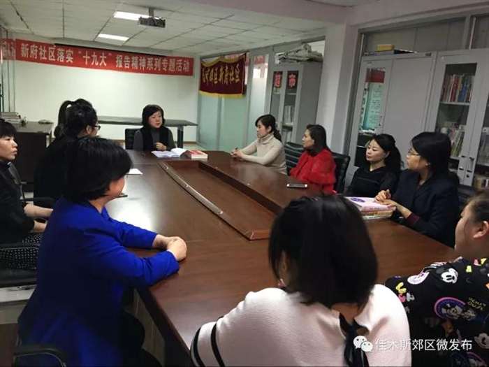 为深入贯彻落实十九大报告精神、切实发挥好社区“精神末梢”作用,根据上级工作部署、结合社区实际情况,11月20日下午,新府社区开展落实十九大报告精神系列专题活动,新府社区全体工作人员和支部部分党员20余人参加活动。