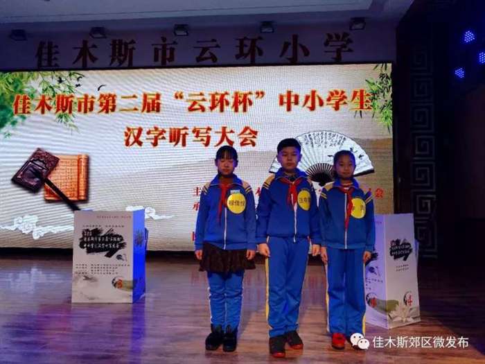 佳木斯市教育局、佳木斯市语言文字委员会于11月11日在云环小学召开第二届“云环杯”汉字听写大赛。本次参赛队伍共有28支,每队3人,计84人。其中外县10个参赛队、市区5个参赛队、市直学校13个队伍。郊区望江中心小学的穆佳悦、汪存易、李哲三名同学经过层层选拔、过关斩将,最后胜出,代表郊区参加全市汉字大赛,获得了参加全市汉字听写大赛的入场券。经过几轮激烈角逐,穆佳悦表现突出,和二十小的选手形成激烈的胶着状态,最后虽未能进级决赛,但大家看到了与优秀选手、先进学校的差距,明确了今后的努力方向。望江联校在今后的工作中将更加注重开拓学生的视野、注重培养学生知识面的深度和广度,本次大赛也必将对教学工作起到引领和带动作用。