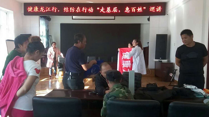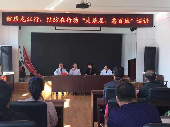 为了让居民了解结核病防治知识,2017年9月22日,佳木斯市结核病防治所一行6人来到英俊社区,开展了---健康龙江行、结防在行动“走基层、惠百姓”巡讲活动。 本次巡讲由市结核病防治所的赵爱迪同志授课。赵爱迪同志以“你我共同参与,依法防控结核”为主题,通过PPT的形式对什么是结核病、结核病的危害、传播途径、就诊途径、哪些人需要做结核病筛查、确诊了结核病怎么办、肺结核病人在治疗过程中应遵守哪些规定、肺结核病人应遵守哪些正确的生活方式及国家免费政策、预防措施等方面进行了直观的讲解。巡讲结束还对居民进行了义诊。 此次巡讲进一步宣传了结核病防治知识,不仅提高了居民对疾病的防护意识与自身健康的认识,同时也拓宽了健康教育宣传形式,扩大了受益居民的覆盖面。活动持续1个半小时,共有40余人参与,现场居民勇于提问,医生都给予正确客观的解答,并建议居民高度重视自我保健,防患于未病,适当的运动、合理膳食、规律生活,同时要保持乐观的心态,正确的对待生活,使心理生理共同健康。