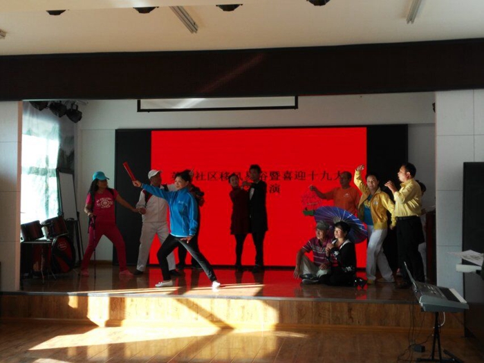为弘扬移风易俗主旋律,扎实推进“两学一做”学习教育制度化常态化,喜迎十九大胜利召开,满足社区居民日益增长的文化需求,丰富群众精神文化生活,展示“结对子、种文化”活动成果和新时代人民群众的形象和风采,宣传正能量,激发广大党员爱党、爱国的真挚情感,9月21日,英俊社区党工委联合开心和谐艺术团共同举办了以“弘扬移风易俗、喜迎党的十九大”为主题的文艺汇演活动,为党的十九大胜利召开营造良好文化氛围。 演出以原创鲜族舞蹈《红太阳照边疆》拉开整场演出的序幕,倾情的投入,唯美的舞姿表达了大家对祖国的美好祝福。艺术团的老人们陆续演唱了《我把一生献给党》、《我的祖国》、《游击队之歌》、《夕阳红》、《再见了大别山》、《远方的书信乘风来》、《我爱祖国的蓝天》等经典红歌。原创情景剧《我们这一代人》展现了党领导下人民幸福的晚年生活。最后以原创藏族舞蹈《单玛》结束整场演出,整个活动现场气氛热烈、精彩纷呈,抒发了大家对祖国热爱之情。