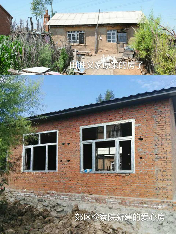 “外面下大雨、里面下小雨,外面不下雨、屋里还嘀嗒”,这样形容村民付河、田胜义的房子一点都不夸张。由此郊区检察院研究决定,出资为两户贫困家庭每户新建一处60平方米的砖瓦房。他们多方联系施工队,晓之以理、动之以情,在保证质量、进度的前提下,压缩房屋造价。每天都有一名驻村干部在施工现场,一是监督施工质量,二是人手不够时,就帮着和泥、搬砖。一位年过7旬的老大娘感叹地说:“这才是干实事的、干真事的共产党员!”现在两所住房全部封顶,外墙保温也施工完毕,预计9月上旬两户村民就可以住进宽敞明亮的爱心房了。