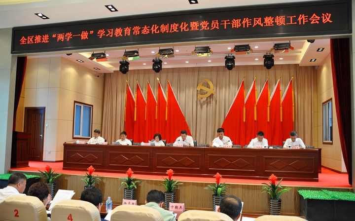 6月13日下午,郊区召开推进“两学一做”学习教育常态化制度化暨党员干部作风整顿工作会议。区委书记高志军同志出席会议并讲话。区现职副处级以上领导干部,各乡(镇)党政班子成员,社区党工委书记,区直机关党委(总支)班子成员,部分驻区单位班子成员,区委“两学一做”学习教育协调小组全体同志共247人参加会议。村、社区和区直单位其它党员干部通过远程直播方式同步收看会议。 会议由区委副书记范继涛同志主持,区委常委、组织部长、统战部长闵祥寒同志传达省市“两学一做”学习教育常态化制度化和党员干部作风整顿工作相关会议精神。区委书记高志军同志就如何抓好学习教育和作风整顿工作强调三点意见。 高志军强调,要突出工作重点,明确学习教育和作风整顿工作目标要求。深入推进“两学一做”学习教育常态化制度化和开展党员干部作风整顿工作,持之以恒地去解决和规范。要按照“全覆盖、常态化、重创新、求实效”的要求,紧扣主题“学”,对照标准“做”,针对问题“改”,压实责任“干”,真正把不良风气扭过来,把清风正气树起来。就要坚持把严格管理干部与热情关心爱护干部结合起来,把集中整顿和日常管理结合起来,以“两学一做”为基本内容,以“三会一课”为基本制度,以党支部为基本单位,以党员干部作风整顿为抓手,推动实现“五个更加”,即政治信仰更加坚定、宗旨观念更加牢固、党内政治生活更加严格、作用发挥更加充分、党的基层组织活力更加显现。 高志军强调,要注重统筹兼顾,推动学习教育和作风整顿工作落到实处。坚持与发挥党员干部示范作用相结合,要牢固树立政治意识、大局意识、核心意识、看齐意识。坚持高线、守住底线,严格执行《准则》、《条例》,在任何岗位、任何地方、任何时候、任何情况下都铭记党员身份,积极为党工作。坚持与抓好基层党组织建设相结合,要树立“大抓基层”的工作理念,大力推进基层党组织规范化、制度化建设。把“两学一做”纳入“三会一课”,作为基本内容固定下来、坚持下去。坚持与改进机关工作作风相结合。要立足实际精准发力,集中解决一批阻碍经济发展、涉及社会稳定、影响民生的突出问题。要持续开展领导干部常态化下基层活动,切实办好民生实事,持续提升人民群众满意度。坚持与强化执政能力建设相结合,要全力做好行政权力和公共服务事项的下放和承接工作,优化工作流程,区直部门和改革试点乡镇要加强协调,共同研究梳理“两清单一流程”,力求前置件减少、环节减少、时限减少,并做到及时、全面、长期公开。坚持与解决群众反映的突出问题相结合。坚持区处级领导干部带头接访、主动下访,坚持首问负责制,凡是第一次接待群众反映问题的部门和人员,都要认真负起责任,耐心细致的做群众工作,对群众的合理诉求,要积极主动协调有关部门帮助解决,有效遏制我区目前信访事件多发的势头。坚持与推进当前重点工作相结合。要坚持把推进学习教育常态化制度化、干部作风整顿与落实省、市、区党代会精神相结合,与我区当前正在抓的各项工作相结合,推动党的建设与经济社会发展充分融合,全力构建“大党建”工作格局,真正做到“两手抓、两不误、两促进”。 高志军强调,要精心组织实施,确保学习教育和作风整顿工作取得实效。坚持以上率下,坚持领导带头做合格党员、合格领导干部,带头强化党性修养,带头严格自律,带头担当负责,在改革发展稳定各项工作中当先锋;带头改进作风,切实发挥表率作用。突出分类指导,坚持从实际出发,加强分类指导,注重区分不同层级不同类型党组织和党员的实际情况,切实增强工作指导性和可操作性,确保各项任务落到实处。强化问题整改,结合各自实际深照细查,逐项列出清单,明确整改目标、整改措施、整改时限和具体责任人,一条一条的改,逐条销号整改。加强督查考核,把学习教育和作风整顿工作纳入目标考评体系和区委巡察工作重点,从工作成效和党员作用发挥、作风转变情况看效果,作为评判各级党组织和领导干部履行管党治党责任情况的重要依据。注重宣传引导,充分发挥先进典型引领和激励作用,及时挖掘、宣传我区践行“两学一做”的先进典型,及时剖析曝光学习教育、作风整顿中出现的反面典型,发挥警示效应。 高志军强调,推进“两学一做”学习教育常态化制度化和作风整顿工作,意义深远、责任重大。让我们更加紧密地团结在以习近平同志为核心的党中央周围,求真务实、真抓实干,以推进学习教育常态化制度化和作风整顿工作的实际成果,迎接党的十九大胜利召开,为实现郊区全面振兴发展做出新的更大贡献!