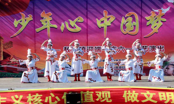 5月27日,敖其镇以习近平总书记关于文艺工作的讲话精神为指导,以《佳木斯市美丽乡村建设工作指导意见》为牵引,以“迎端午节”、“庆六一儿童节”为契机,在敖其赫哲联校操场举办了“弘扬爱国传统,立志报效祖国”为主题文艺演出活动。舞蹈《红红火火大中国》拉开了文艺演出的帷幕,扇子舞《四德歌》展现了文明敖其镇的建设成果,弘扬了爱国主义传统,培养了青少年爱国主义思想。具有敖其赫哲特色的赫哲舞蹈《乌苏里船歌》把整场文艺演出引向了高潮。在活动现场,还对捐赠贫困学生和关心妇女儿童的爱心人士进行了颁奖。