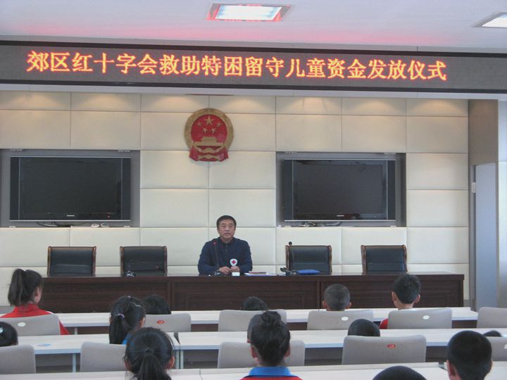 在六一儿童节来临之际,郊区红十字会联合郊区12所小学开展了“关爱救助贫困留守儿童”活动,此次活动由学校申报救助名单,再经区红十字会审核,最终确定对60名贫困留守儿童进行救助。区红十字会在上级补助1万元救助金的基础上,又匹配2万元资金用于救助60名贫困留守儿童。这项活动已连续开展了4年,让170余名贫困留守儿童家庭感受到了党和政府的温暖。 5月26日上午9时,在区政府西厢4楼会议室举行了救助贫困留守儿童资金发放仪式。区红十字会副会长王春波为每名儿童发放500元救助金,钱的数量虽然不多,但这是给孩子们的一份关爱,鼓励孩子们要勇敢面对生活,刻苦学习,懂得感恩,将来做一个对社会有用的人。 希望通过此次活动,能带动更多的爱心企业、爱心团体和爱心人士关爱留守儿童,为社会弱势群体奉献爱心,使更多留守儿童得到救助,号召更多的爱心人士加入到我们的队伍中来,关注弱势群体,关爱留守儿童。