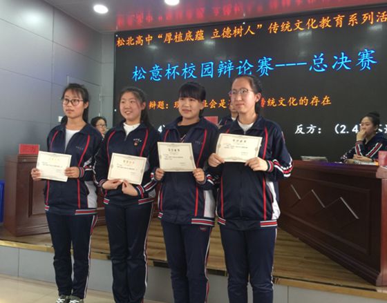 “松意杯”校园辩论赛是松北高中德育教育的一项重点工程,目的是通过团队辩论比赛的形式,锻炼学生们的语言表达能力、思维扩展能力、临场应变能力以及信息提炼能力,培养敢想、会说、思维敏捷、富有团队精神的新时代高中生。 |