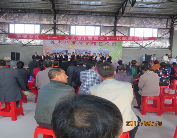 曲,阿里 艺术团奉献了精彩的红歌及朝鲜族舞蹈,平安乡全体机关干部带头为贫困学生捐款,在此感召下,平安乡双兴村村民也纷纷加入到捐款行列中,