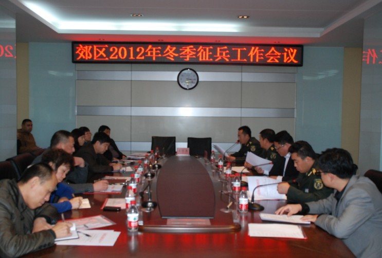 10月12日,我区召开征兵工作会议,总结2011年征兵工作情况,部署2012年征兵工作任务。会议要求,全区各乡镇、街道办要充分认清形势,切实增强征兵工作的责任感与使命感,加强组织领导,科学筹划部署,严格政策规定,形成合力圆满完成我区今年征兵任务。区征兵领导小组成员和各相关单位出席会议,会议由区政府办公室、征兵领导小组副组长徐庆生主持。
