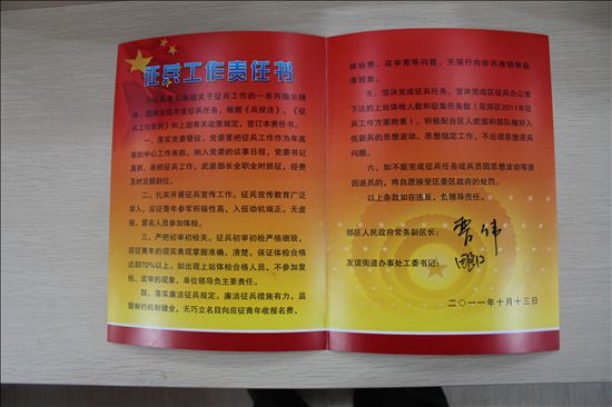 10月13日下午14:30时,我区召开了2011年征兵工作会议。会议由区政府办公室主任徐庆生同志主持,会议上首先听取了区人武部政委、区征兵工作领导小组副组长卞朝杰同志传达省、市征兵工作会议精神,并宣读了《关于调整佳木斯市郊区人民政府征兵领导小组及办公室成员的通知》、廉洁征兵相关规定;区人武部部长、区征兵领导小组副组长刘冀明同志总结我区2010年度征兵工作,部署2011年度冬季征兵任务;区委常委、区政府常务副区长、区征兵领导小组组长晋伟同志与各乡镇、街道党(工)委书记签定征兵工作责任状并做了重要讲话。 会议要求各乡镇、街道办、各相关部门,要抓好征兵工作,增强信心,坚定决心,掌握工作进度,督促任务落实。强化服务意识,搞好教育引导,加强政策引导,切实把政治意识强,身体素质好、文化程度高的青年送入部队。确保廉洁征兵,强化纪律观念,自觉抵制不正之风侵蚀。坚持公开征兵条件、公开征兵政策、公开征兵纪律、公开征兵名单,自觉接受社会和群众的监督。确保高标准、高质量完成好今冬的征兵工作任务。 参加会议的有区委常委、区政府常务副区长、区征兵领导小组组长晋伟同志,区征兵领导小组副组长和成员单位负责人,各乡镇、街道党(工)委书记、武装部长,驻区单位负责征兵工作的同志。