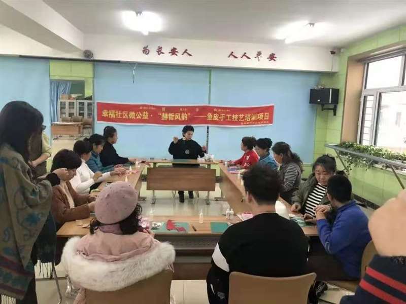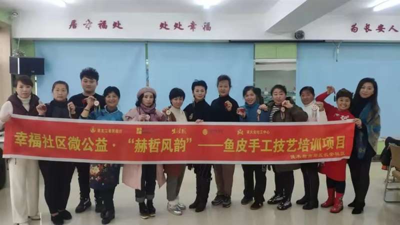 11月20日,幸福社区微公益·“赫哲风韵”鱼皮手工技艺培训项目在长安社区正式启动,邀请到鱼皮手工技艺讲师开展为期两天的鱼皮手工技艺培训活动。