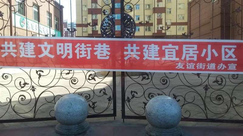 为推进整治工作,友谊街道各社区积极宣传,出动160人次,粘贴宣传单200余张,悬挂过街条幅40余条,对辖区内的20余栋楼房及平房区进行外围反宣品及小广告清理,出动8辆铲车清理垃圾,积雪30余处,重点整治了长安社区义兴巷沿街两侧商铺乱堆乱放现象。