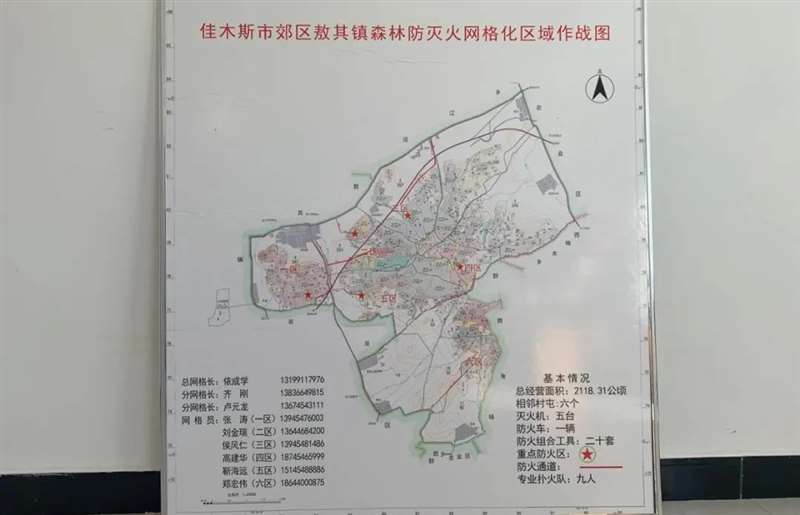 召开工作联席会议,积极沟通协调合作,并针对本镇辖区地界制作敖其镇森林防火网格化区域作战图,将人员姓名、联系电话、坐标方位等信息进行标识,一目了然,要求每名网格长都能清楚自己分管区域内防火重点、人员布局、设施设备数量等情况,加强森林防火联防联动的经验交流,不断推动合作,形成横向到边、纵向到底的森林防火网络。