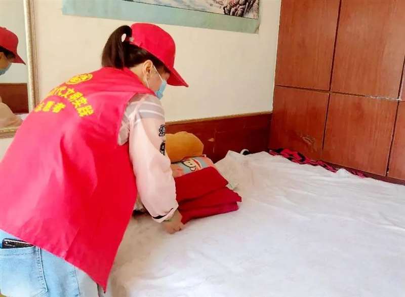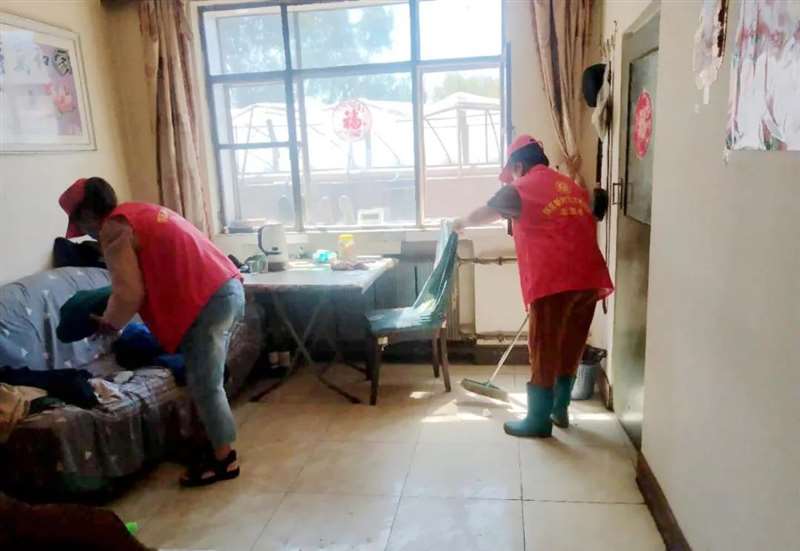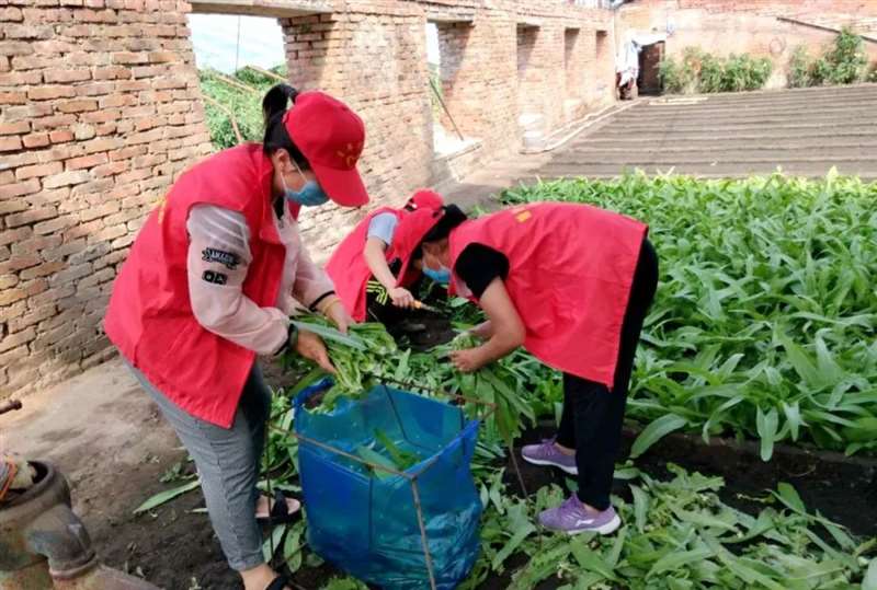 妇女志愿者们在农户指导下撸起袖子开始忙活起来,在帮助农户抢收蔬菜后又来到了贫困妇女家中,帮助她们清扫屋内死角、清扫庭院。