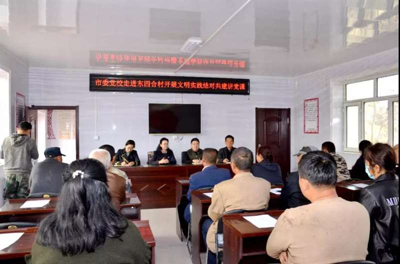 10月10日,市委党校走进长发镇东四合村开展文明实践对接共建活动。校党委副书记周明带队来到东四合村,详细了解村文明实践站建设和活动开展情况,认真倾听党员们脱贫致富的奋斗故事以及生产生活中的困难和诉求,并与镇村干部交流经验做法。