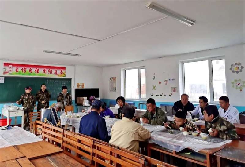 除绝大部分投亲靠友的村民外,两个撤离村屯中共计剩余17名村民由于特殊原因在集中安置点避难,由乡里的女干部每班4人负责为集中安置人员打饭,收拾安置点卫生等,安置点的一位大娘感激的说到,“感谢党的照顾,家里受灾不要紧,人只要活着,就还有希望!”大娘的乐观同时感染着安置点的每一个人。